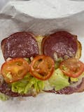 Real chipped steak, onion, green peppers, mushrooms, hot pepper cheese, lettuce and tomato