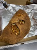 loaded with mashed potatoes onion, provolone, mozzarella and cheddar cheese.