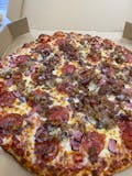 Topped with cheese, bacon, ham, pepperoni and sausage